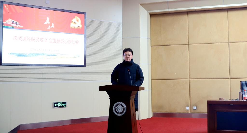 为深入学习习近平新时代中国特色社会主义思想,全面贯彻落实全国高校思想政治工作会议精神,扎实推动中共中央办公厅、国务院办公厅印发的《关于深化新时代学校思想政治理论课改革创新的若干意见》在我校落实、落细,充分发挥我校党政领导班子成员在思政课建设中的模范表率作用,按照学校党委统一部署和安排,2020年12月17日下午,我校徐雅娜副校长在图书馆一楼学术报告厅为信息工程系学生上了一堂以《决战决胜脱贫攻坚 全面建成小康社会》为题的专题思政课。专题思政课由信息工程系党总支副书记李闯主持。