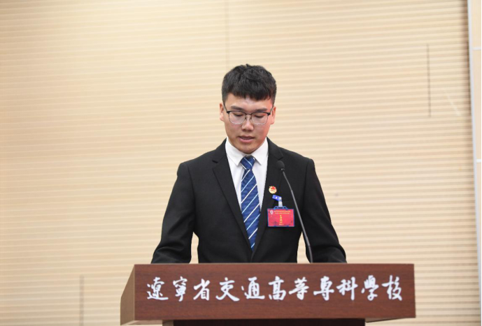 开幕式上,孙冲同学代表辽宁省交通高等专科学校第三十届学生会向大会作《辽宁省交通高等专科学校第三十届学生会工作报告》。