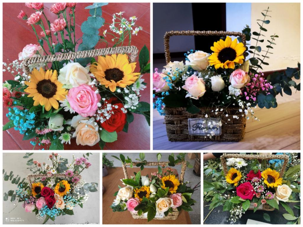 活动开始,花艺师对插花的由来、花器的异同以及如何养花护花进行了讲解,介绍了花材、叶材的修剪处理,插花基本结构和基本造型技法,并为大家示范插花步骤。在花艺师的讲解和指导下,教职工们展现自己的聪明才智,发挥对美的想象和创意,经过一个多小时的亲手实践,一盆盆各具特色的美丽插花作品展现在大家眼前,大家手捧着自己的得意之作,纷纷拍照留影,脸上洋溢着喜悦之情。