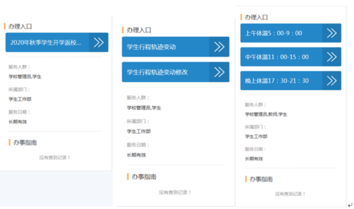 为更好地做好校园疫情常态化防控工作,信息技术中心与学生管理处密切合作,深入调研学生返校前行程轨迹填报、返校中扫码签到入校、返校后体温一日三报等问题,完成了一整套学生开学返校的疫情防控方案,在暑假期间利用学校一站式服务大厅自主开发了“疫情防控服务系统”,包括:“学生秋季返校申请”“学生行程轨迹变动”“体温打卡”等应用,该系统集成微信小程序、教师端后台管理平台,能实现对学生单日风险和30日综合风险的智能研判,确保疫情防控常态化下对学生风险点的智能管控。