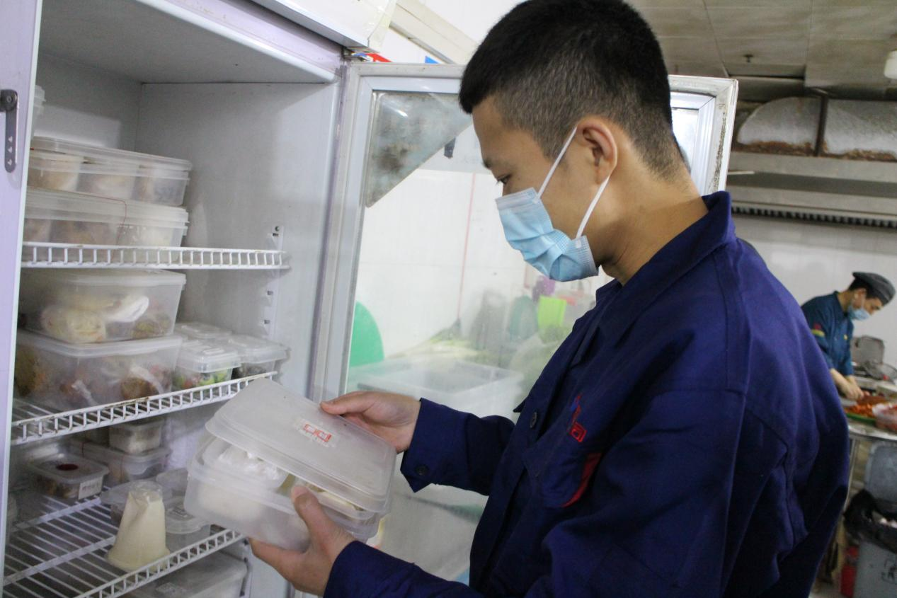 深入食堂各功能区进行现场检查,认真查看从业人员个人卫生、着装及口罩佩戴情况、食品原材料记录及检验检疫合格证、饭菜留样记录、内部环境卫生等,对检查中发现的问题进行细致点评,提出整改意见并就如何提高食品卫生质量提出进一步要求。