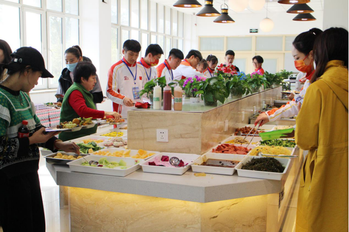 餐饮保障,温馨周到。在校庆供餐筹备中,后勤管理处餐饮中心从菜谱制定、原料采购、宣传氛围营造、餐饮服务保障等多个方面详细制定对应的方案,以高质量的餐饮服务接待校友及师生。餐饮中心一、二楼自助餐区、三楼教工餐厅为校友及在校教职工提供校庆免费午餐,为让校友感受到“家”的温馨,找回过往已久的记忆,菜色品种经过反复斟酌,严把食品安全关,做到菜品精细而不铺张,简朴又值得回味。一、二楼区域餐饮公司精心准备美味可口的校庆蛋糕以及演唱会、抽奖活动,为此次校庆增添了多彩的一笔。