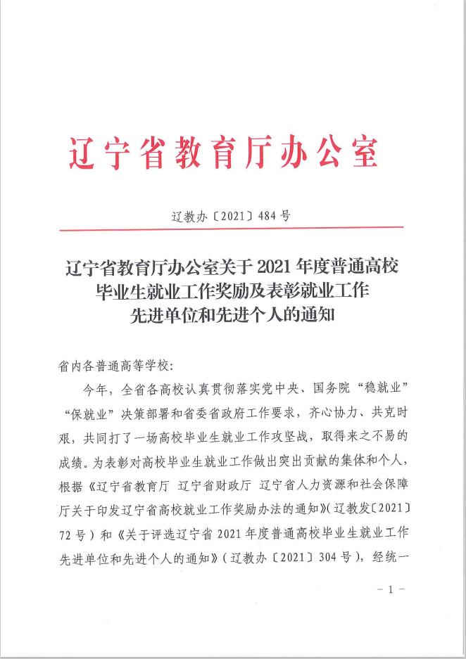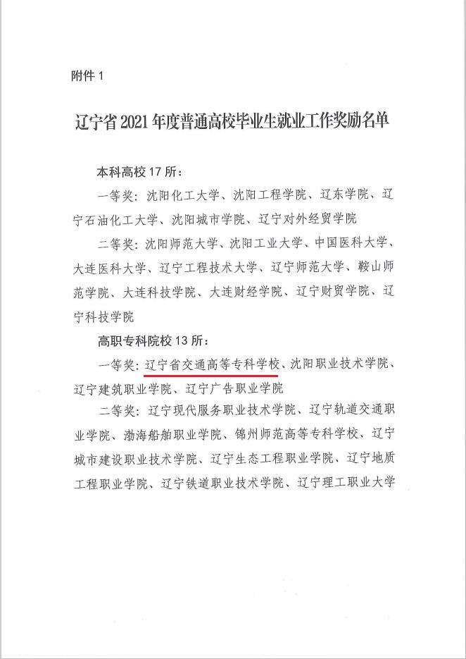 近日,辽宁省教育厅办公室印发了《关于2021年度普通高校毕业生就业工作奖励及表彰就业工作先进单位和先进个人的通知》(辽教办[2021]484号),我校荣获“辽宁省2021年度高校毕业生就业工作奖励一等奖”、“辽宁省2021年度普通高校毕业生就业工作先进单位”两项殊荣,汽车系党总支书记惠有利同志被授予“辽宁省2021年度普通高校毕业生就业工作先进个人”荣誉称号。