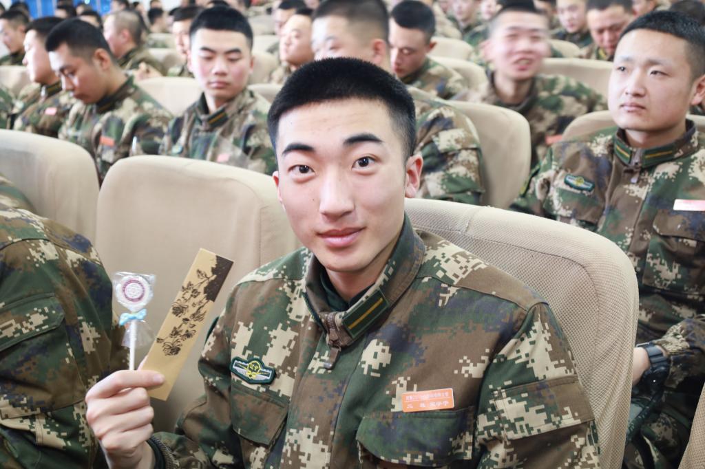 1月29日,在锦州新兵连随队集训唐教官为每名士官学子分发了春节纪念品,同学们收到了来自母校的牵挂和祝福。
