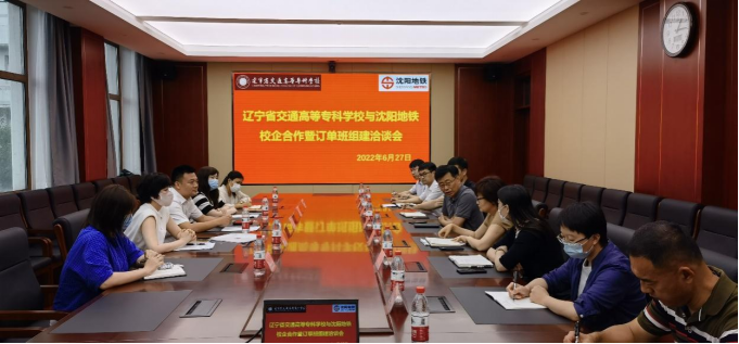 2022年6月27日下午,沈阳地铁集团运营分公司副总经理高峰率人力资源办公室刘嘉慧主任、仲军丽、童苏阳副主任、姜晓彤副部长等人来我校开展校企合作暨订单班组建洽谈。学校党委张亚军书记、创就业教育学院徐天舒院长、校企合作办公室段兴盛主任、学生工作处王楠处长、党政办公室方晓辉副主任、轨道交通工程系刘继光主任、姜春霞、孟博翔副主任出席了会议。