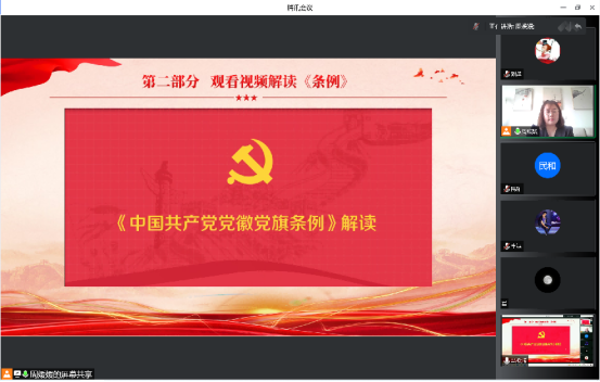 全体党员同志在组织委员李淳同志的带领下,认真学习了《中国共产党党徽党旗条例》(2021年6月26日中共中央印发),并观看了《中国共产党党徽党旗条例解读》视频。通过学习党员同志对党徽党旗的重大意义、深刻内涵,以及党徽党旗的生产制作、使用管理、监督问责等要求,有了清晰正确的认识。旗帜就是方向、旗帜就是形象、旗帜就是力量,深深镌刻进每一位党员的心中!