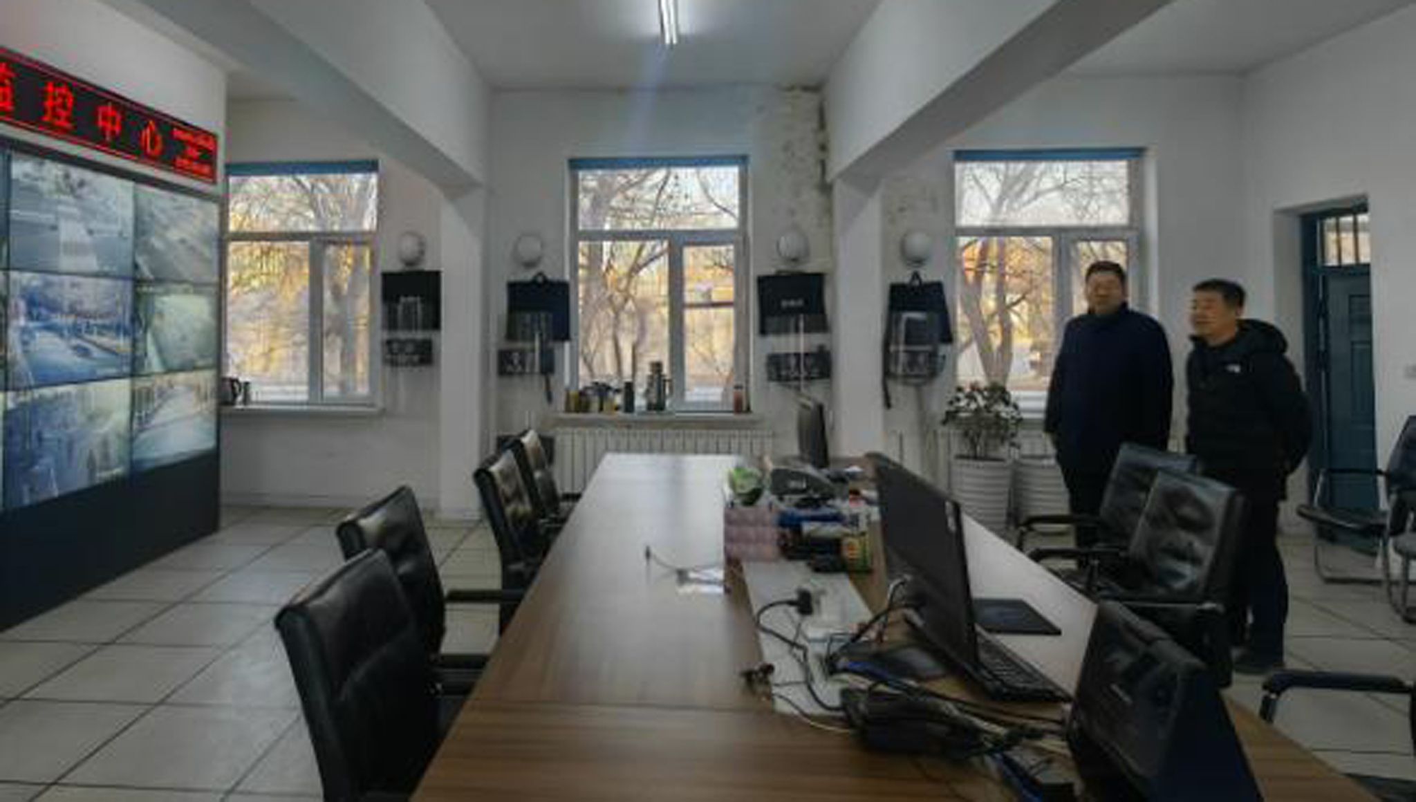 调研人员率先来到了安全保卫处值班室,查看了学校监控中心的运行情况。王宇副校长详细地询问了安全保卫处的值班、巡逻情况以及监控存储是否达到30天的要求,并通过校园监控大屏查看了校园监控具体布防情况。