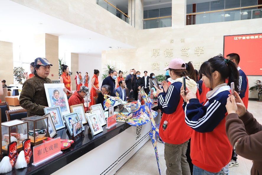 为提高全民参与保护非物质文化遗产的意识,厚植爱党、爱祖国、爱家乡的情感,不断增强文化自信,2023年4月12日下午,在学校党委宣传统战部、工会、团委和管理工程系的组织配合下,辽宁省文化和旅游厅主办的“辽宁省非物质文化遗产进校园进社区公益惠民活动”走进我校,300余名师生观看了20位非遗项目传承人的展演展示。