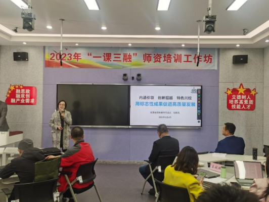 本次培训主讲人明照凤教授以“用标志性成果促进高质量发展”为题做主旨报告。明照凤表示,本次培训是校联会双创教育专委会在东北三省的首场入校培训。教育的核心在教学,教学的核心在课堂,职业院校立足于服务区域经济,培养高素质、复合型、创新型人才。“一课三融”课程建设将融思政、融双创、融产业需求的理念落实到教育教学工作中,助力教师实现课程重构,教学模式改革和课程内涵提升。