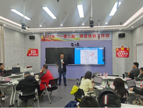 培训专家郭叶峰、朱玫林两位老师分别从国家在线精品课程、一课三融示范课和一课三融课程设计等方面展开了深入阐述。参训老师在课堂上认真听讲、悉心总结学习心得、认真思考课程设计与规划,在新的教学理念指导下,努力提升课程建设和创业指导能力,圆满完成了培训任务。此次培训,持续深化我校“三教改革”策略,进一步提升专业课程内涵建设,助力广大教师培育更多标志性成果,推动学校教育教学高质量发展。