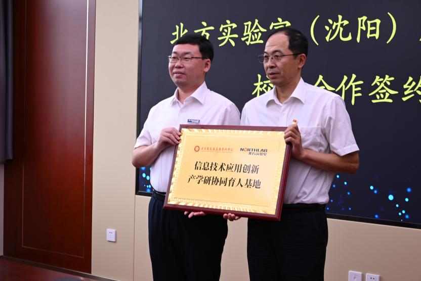 在仪式上,学校党委书记任冰与北方实验室(沈阳)股份有限公司副董事长兼总经理张健楠代表双方签署校企合作框架协议,并进行信息技术应用创新产学研协同育人基地揭牌。双方将共同推进全方位、多层次的交流与合作,扩展合作领域的广度和深度,共同探索信息技术应用创新人才培养新途径、新模式。