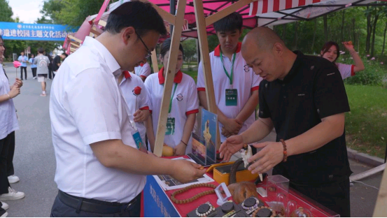 (团省委副书记葛骁欧到“非遗”进校园活动现场参观指导)