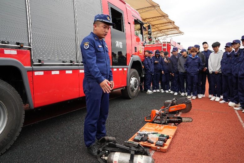 随后,由沈北新区消防大队消防救援站站长助理孙博为新生讲解消防安全常识,提醒广大学生应在日常生活中提高安全意识,加强消防安全常识的掌握及用火用电的注意事项,提示同学们平时杜绝违章用电。并介绍了在遇到火灾时应采取哪些有效措施进行自救及安全逃生的要领,详细讲解了灭火器的使用方法以及在使用灭火器的过程中需要特别注意的事项。同时,消防战士还组织了部分同学参观了消防救援车辆,现场观看了消防战士实际操作的过程,使同学们对消防救援工作有了更新的认识。