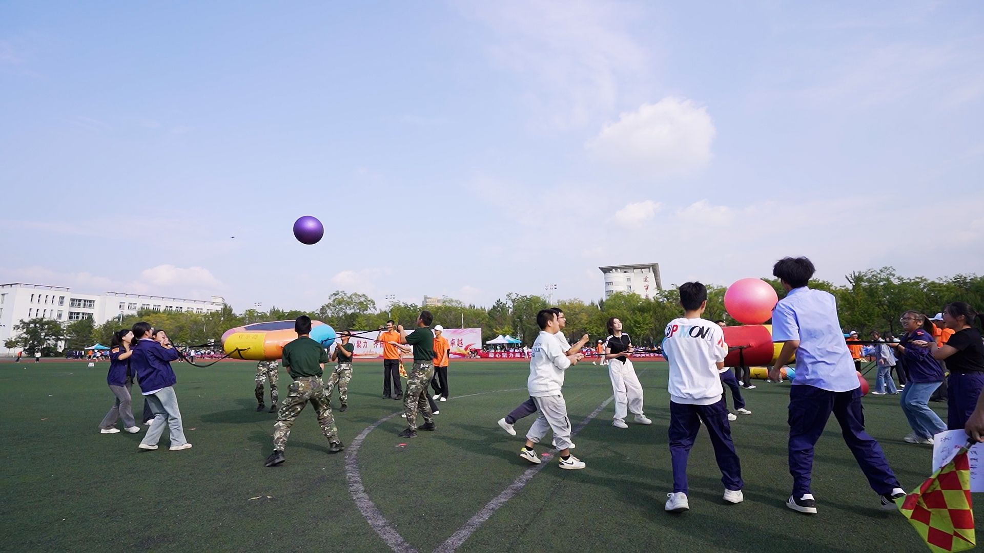 教职工参加的趣味项目赢得全场师生的呐喊助威。他们既注重团队协作,又善于发挥特长,在比赛项目中你追我赶、奋力拼搏,表现出了蓬勃健康的身心状态和积极向上的风采。各分会教职工积极参加各项比赛,大家在紧张工作之余体会到了体育运动的乐趣及身心放松的愉悦。