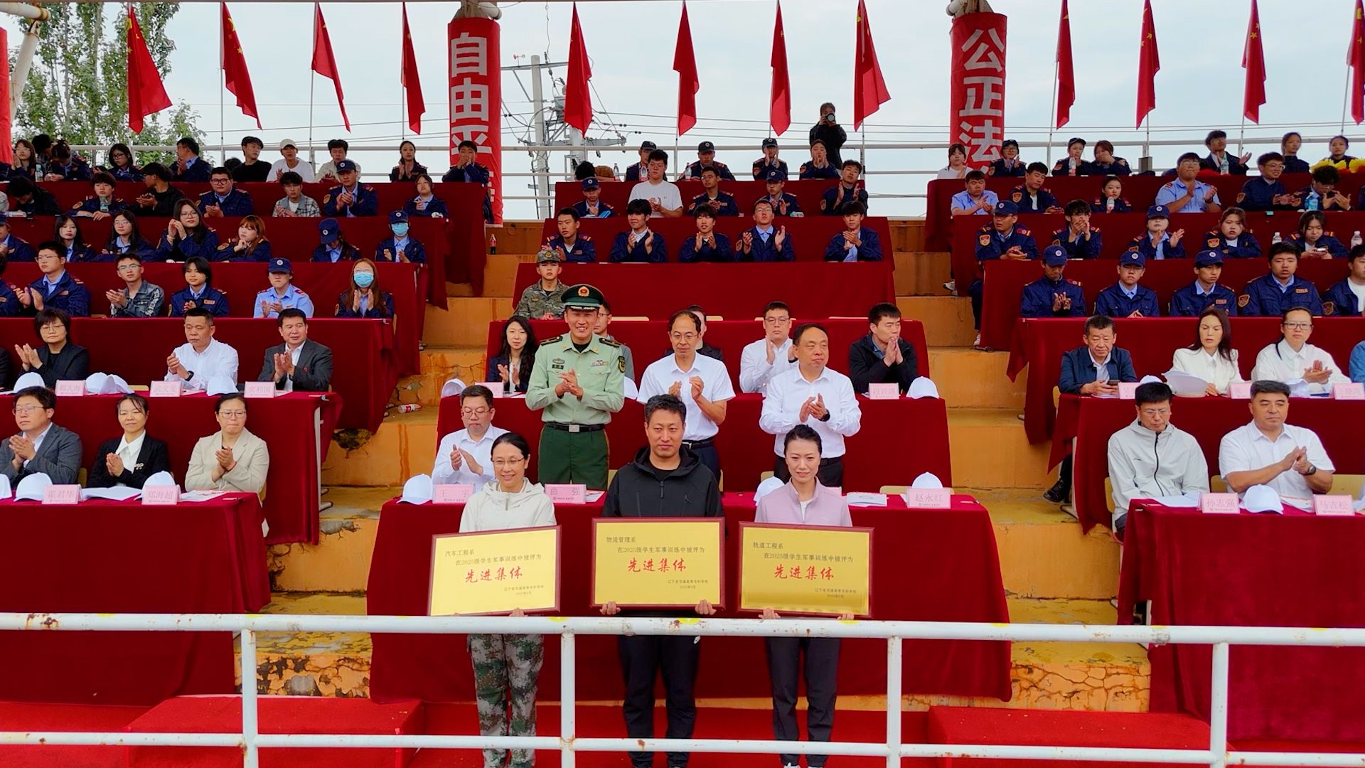 秋风送爽启新程,意气风发绽芳华。在这充满收获与希望的季节里,辽宁省交通高等专科学校新生军训汇报表演暨2025年体育健身运动会在学校体育场隆重举行。由校领导班子成员、各系党总支书记、相关职能部门负责人组成的大会主席团在主席台就座,全校教职工及学生参加大会开幕式。