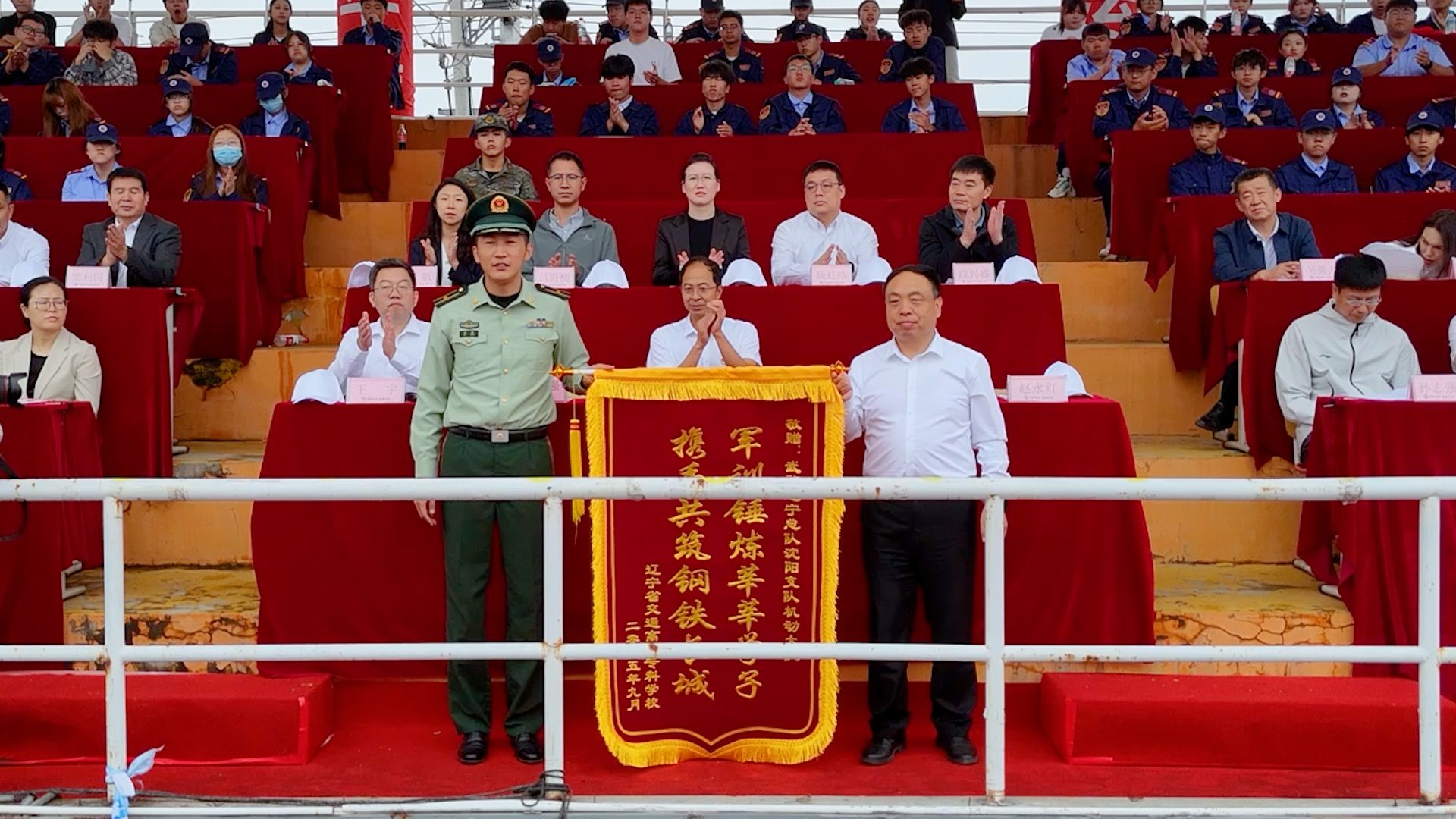 伴随着秋高气爽的好天气,沐浴着九月的暖阳,校长孙延鹏在主席台上隆重宣布辽宁省交通高等专科学校新生军训汇报表演暨2025年体育健身运动会开幕!