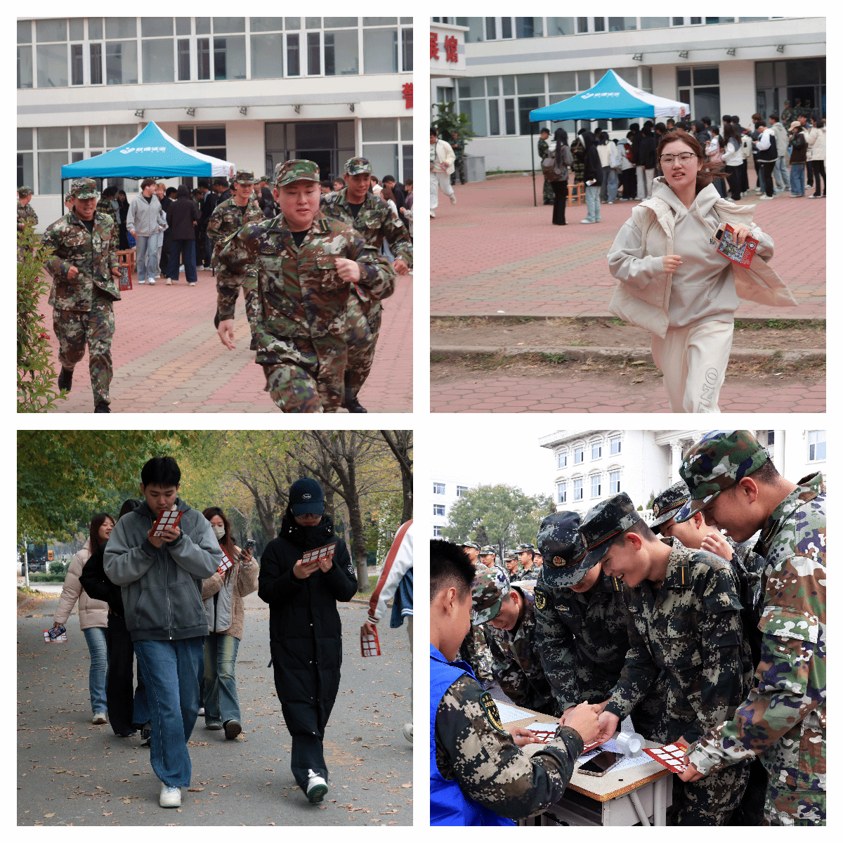 活动现场以校园为课堂,将红色文化资源与校园环境有机结合,创新设置了八个红色主题教育打卡点,参赛学生手持特制集章卡,依次前往各打卡点完成答题任务,每个打卡点对应一个红色主题,通过抽签答题的方式,使学生在行走中深化抗战历史,感悟抗战精神,坚定爱国信念,激发学生为实现中华民族伟大复兴而努力奋斗的决心。