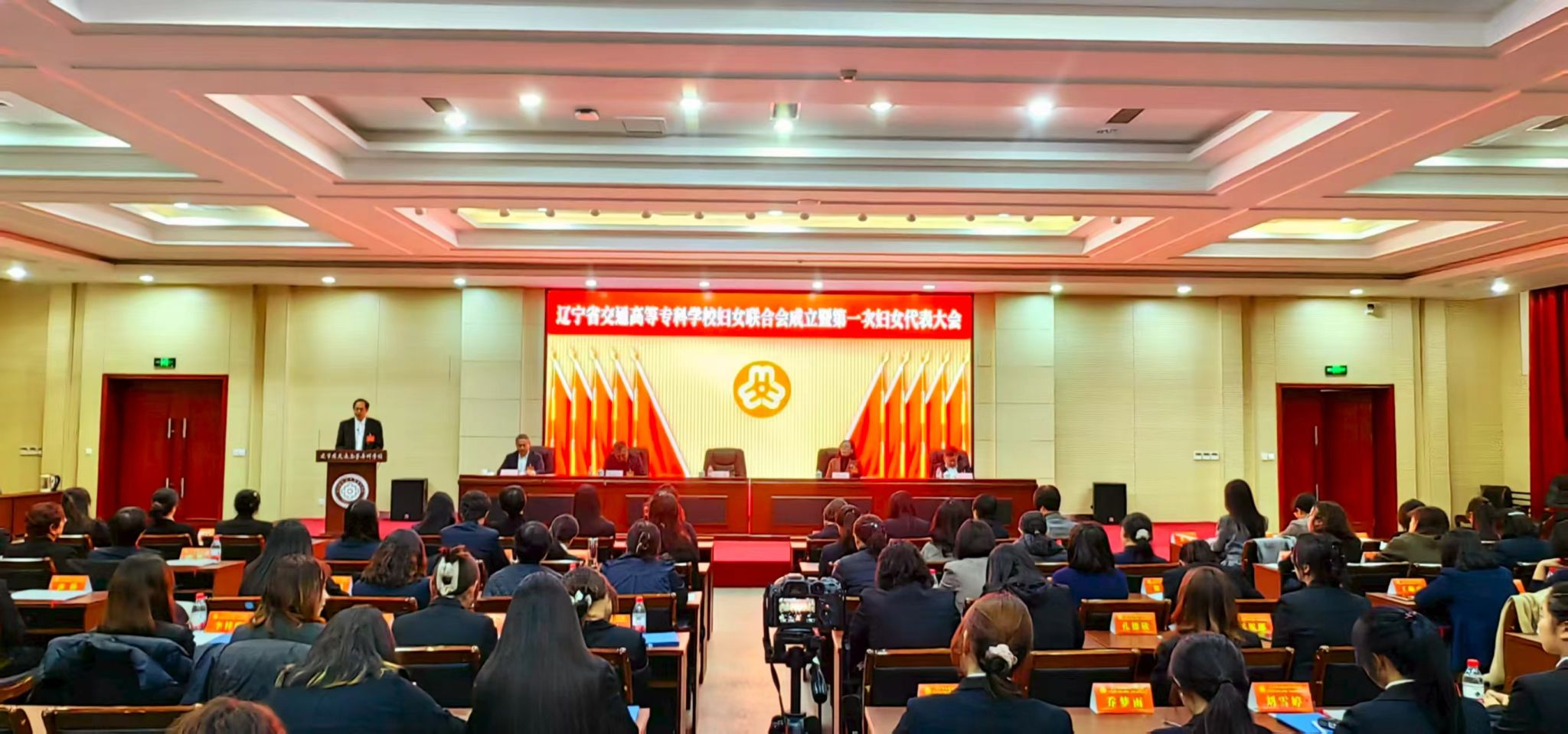 11月5日,辽宁省交通高等专科学校妇女联合会成立暨第一次妇女代表大会在学生素质教育中心101多功能厅召开。沈阳市沈北新区妇联副主席关丽君莅临大会。学校党委书记任冰,纪委书记赵永红,副校长张洪革、副校长王宇出席会议,会议由副校长张洪革主持。75名妇女代表大会代表参加大会,各单位、部门非正式代表的负责同志列席大会。大会在庄严的国歌声中拉开帷幕。