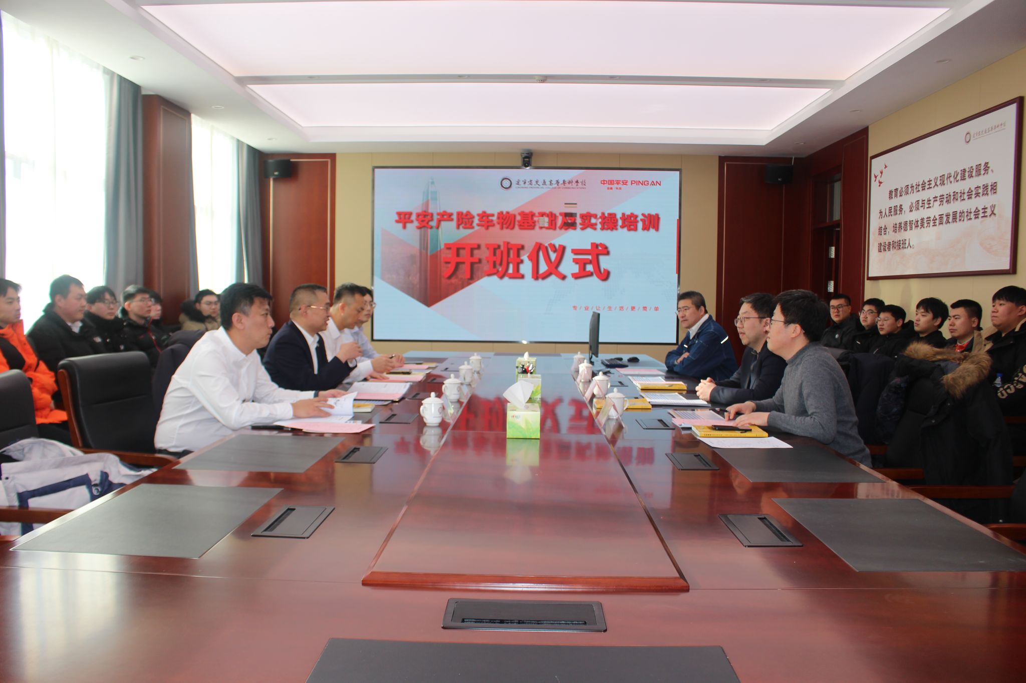 为实现职业教育办学能力高水平和产教融合高质量,1月23日,我校与平安产险辽宁分公司共同举行校企合作“车物基础及实操培训”开班仪式,开启职工专业培训新篇章。平安产险辽宁分公司副总经理张云佳、辽宁省交通高等专科学校副校长王宇、全体参训学员、培训讲师代表共同出席了仪式。仪式由汽车工程系主任金雷主持。
