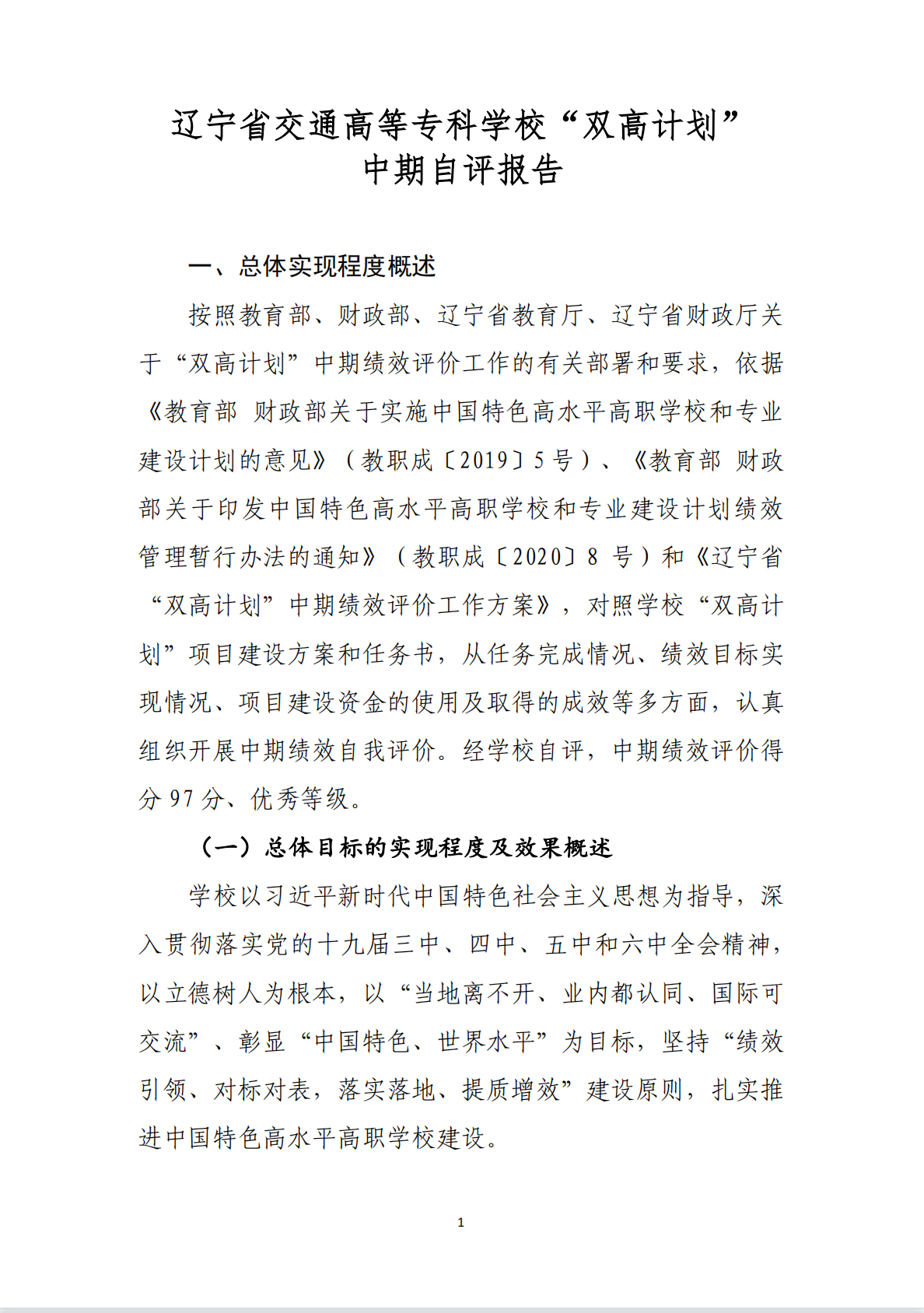 辽宁省交通高等专科学校“双高计划”中期自评报告