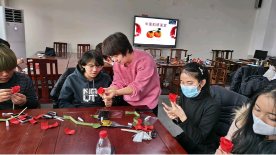 同学们对李雪老师的介绍非常感兴趣,纷纷表示要学习掐纸技艺,亲手制作属于自己的作品。李雪老师耐心的传授了“掐褶”的方法,又拿着预先准备好的材料,指导同学们制作了掐纸玫瑰花。