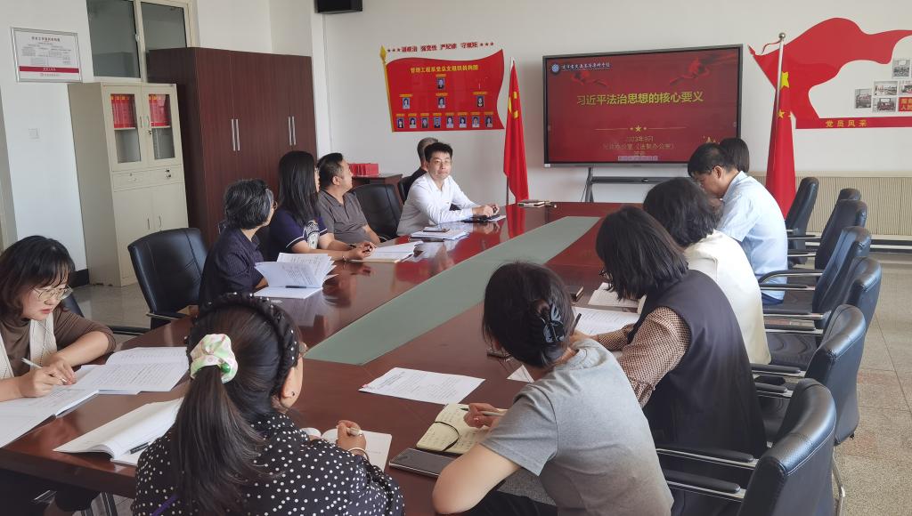 2023年9月20日,管理工程系党总支在A615组织开展 “习近平法治思想”主题党日,学校法制办公室主任管奇同志以“习近平法治思想的核心要义”为主题讲党课。会议由系党总支书记王富饶主持,管理工程系全体教工党员参加了会议。