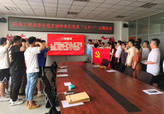 为引导毕业生党员保持先进性,发挥模范带头作用,争做“有理想、有境界、有品格、有才华”的时代青年,机电工程系学生党支部于6月28日召开2023届毕业生党员“七个一”主题活动,深化毕业生党员教育,上好毕业前最后一堂“思政课”。