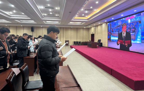 今年12月4日是第十一个国家宪法日,为贯彻落实习近平法治思想和习近平总书记关于宪法法治教育的重要指示精神,按照教育部、省教育厅《关于开展2024年教育系统“宪法宣传周”系列活动的通知》要求,结合《辽宁省交通高等专科学校落实<全国教育系统开展法治宣传教育的第八个五年规划(2021-2025年)>工作实施方案》相关安排,12月4日上午,党政办公室(法制办公室)、学生工作部联合组织开展了2024年宪法宣传周主题法治教育暨国家宪法日晨读活动,学生工作部教师、学校专职辅导员及学生干部代表参加了本次活动。