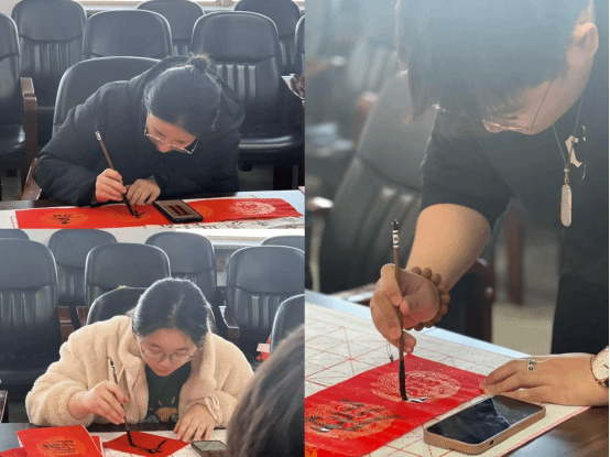 最后,大家纷纷挥毫泼墨,将美好的祝愿凝聚在笔尖,书写出一幅幅寓意深刻的春联。然后同学们将自己书写的春联张贴在老师办公室、学生寝室、还有工作室的门上,它不仅表达了学生对老师一年来辛勤培育的感恩、对寝室同学深深的祝福,更传递了对新一年充满希望与梦想的积极态度。