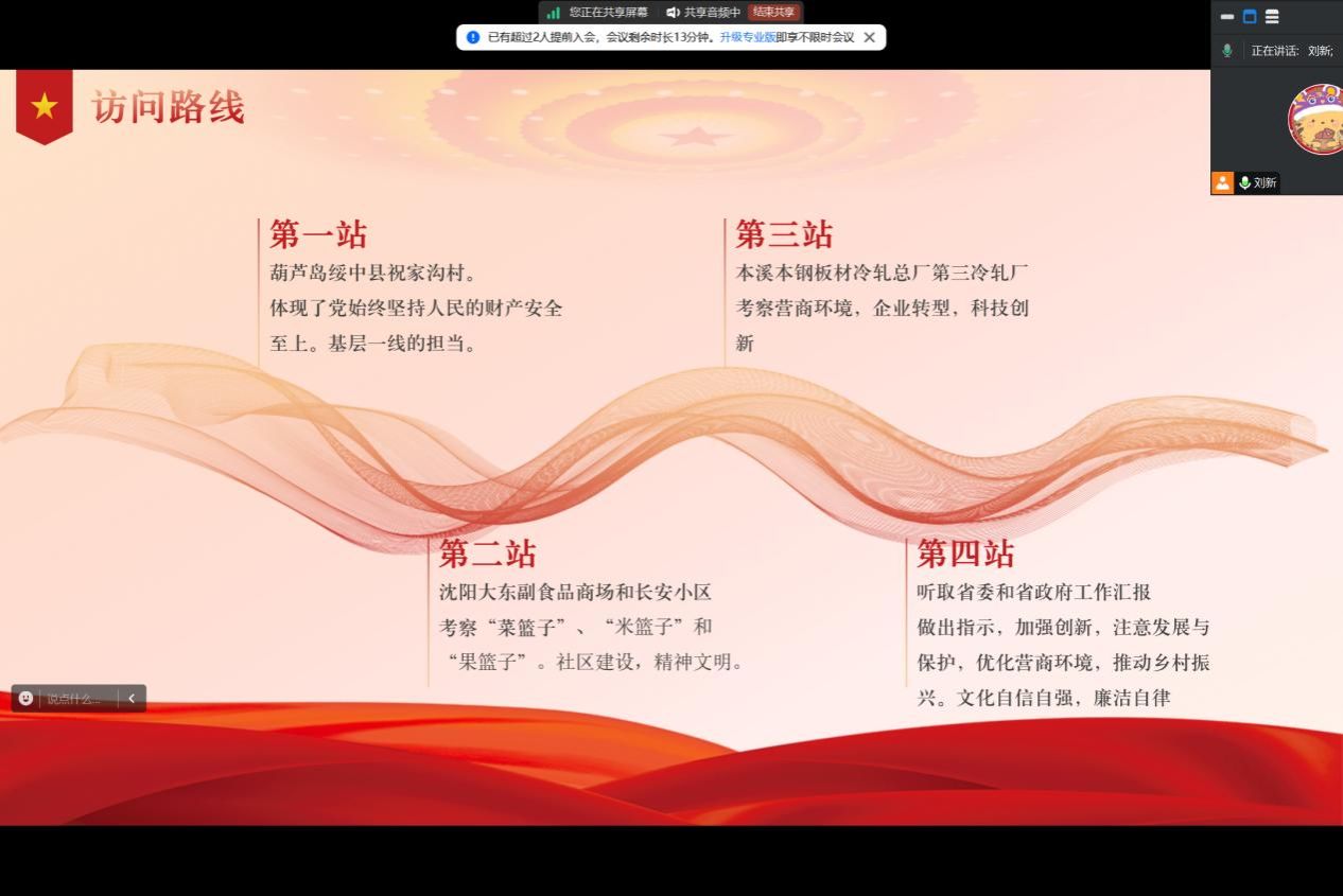 活动分为三个环节,首先,刘新老师通过一段视频向师生展示习近平总书记赴辽宁考察时的路线和场景。
