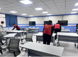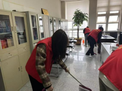 继续教育培训学院分会对所属区域的卫生环境进行大扫除