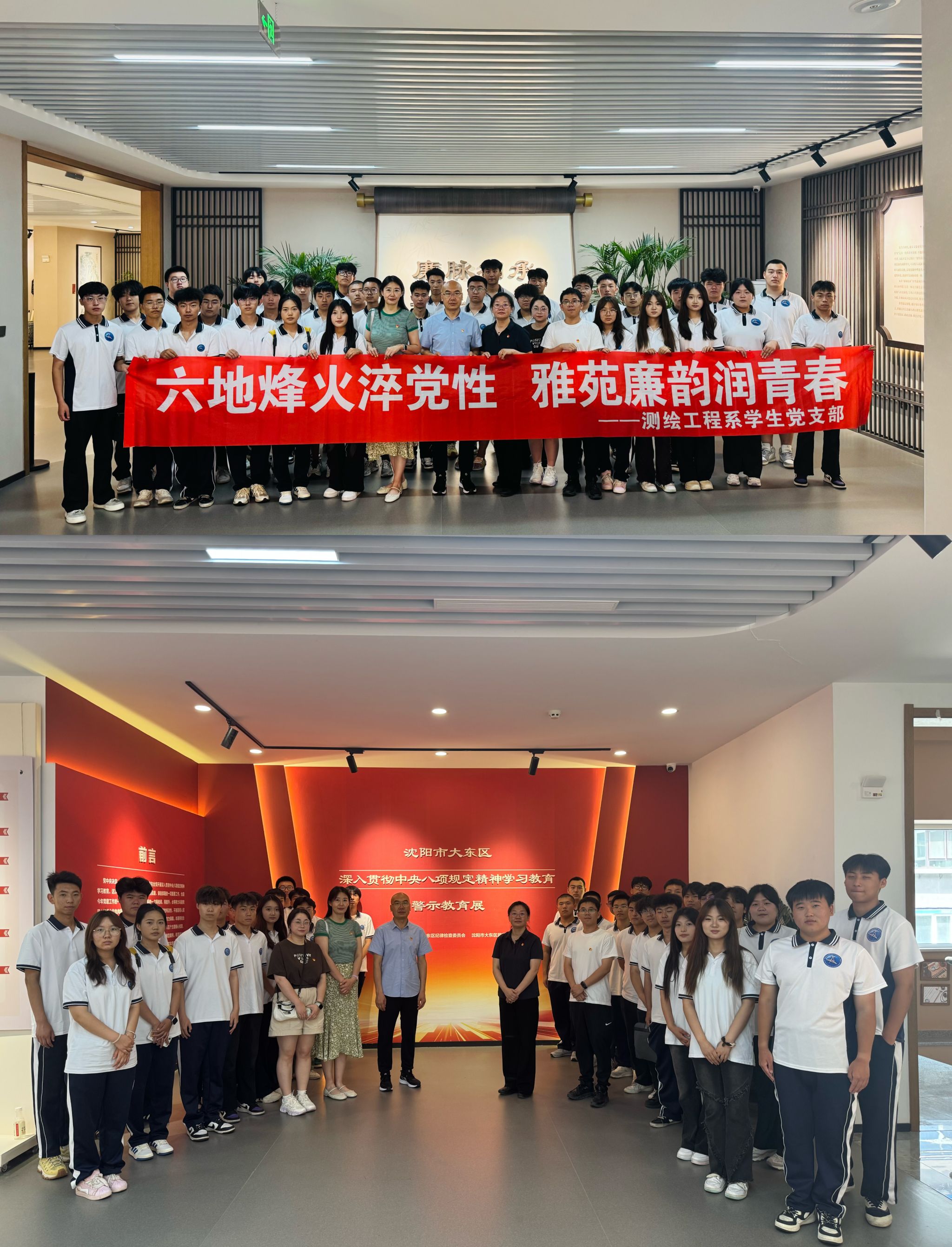 为深入贯彻中央八项规定精神学习教育,强化党员队伍廉洁教育,2025年7月10日,测绘工程系学生党支部组织教师党员、入党积极分子及优秀学生代表等40余人,赴沈阳市大东区“廉心雅苑”廉洁文化互动体验馆开展主题党日活动,系党总支书记杨学锋一同前往。通过沉浸式参观学习与互动体验,支部师生从辽宁“红色六地”精神中汲取力量,筑牢拒腐防变的思想根基。