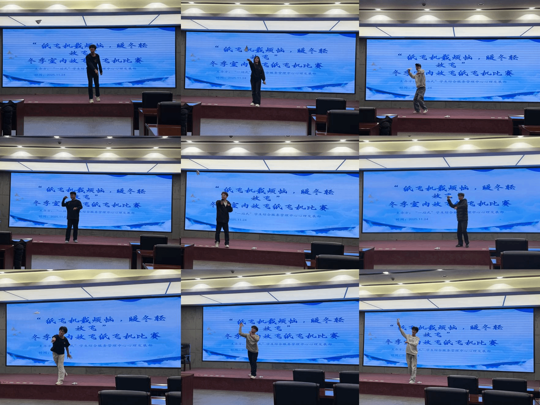 为增强活动趣味性,现场设置了纸飞机飞行距离评比环节,鼓励大家保持积极心态。经过工作人员的综合评定,共评选出一等奖1名、二等奖3名、三等奖6名。