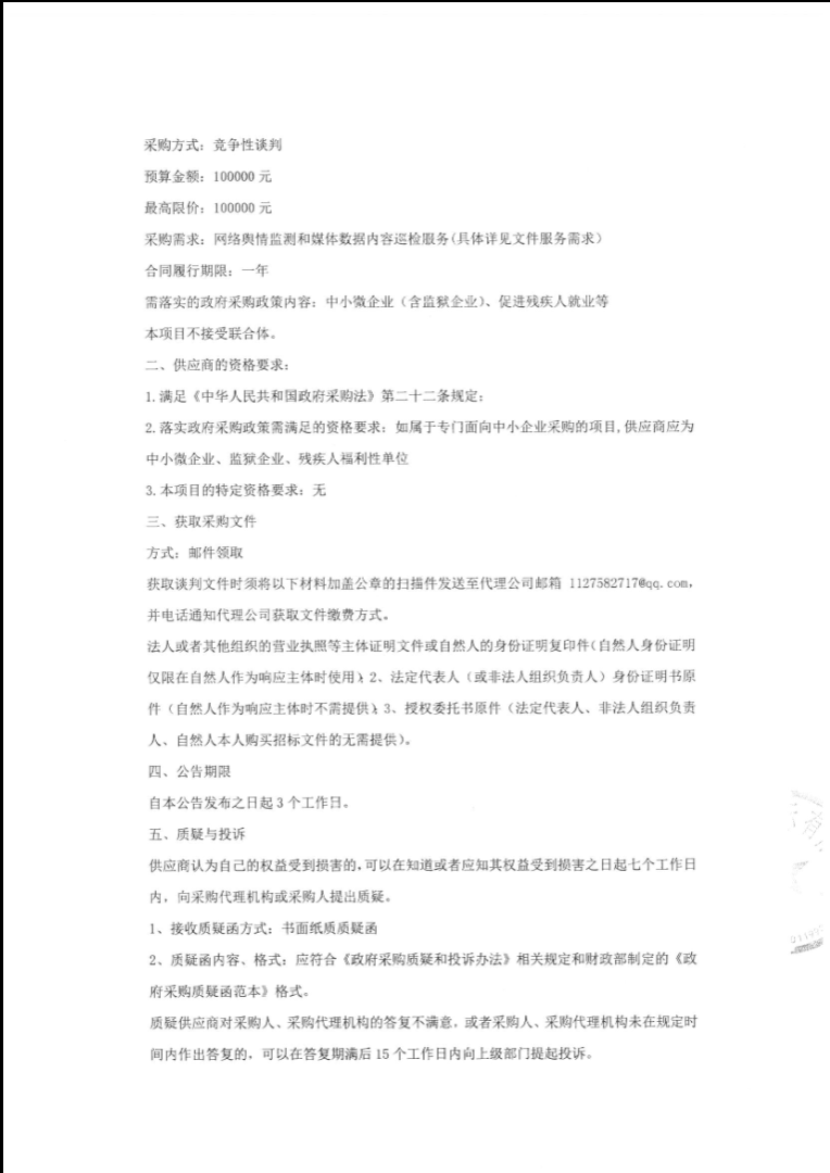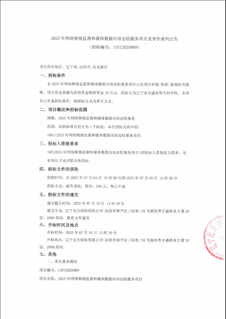 2025年网络舆情监测和媒体数据内容巡检服务项目竞争性谈判公告(LNCC2025069)