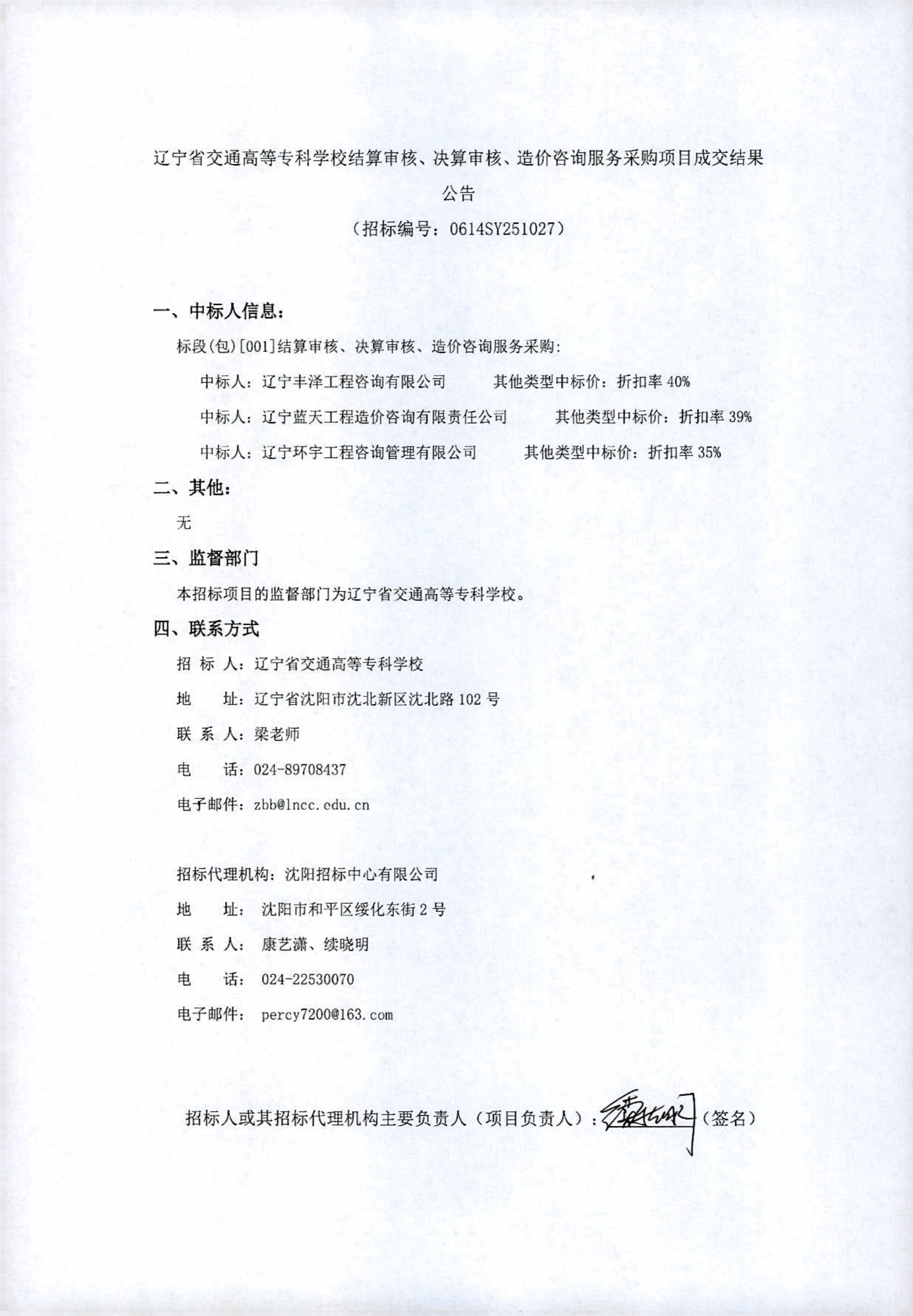 结算审核、决算审核、造价咨询服务采购项目成交结果公告(LNCC202560)