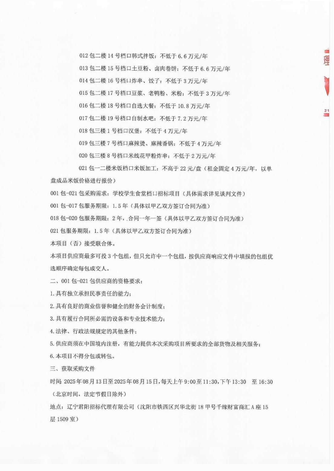 学校学生食堂档口招标项目采购公告(LNCC2025017)