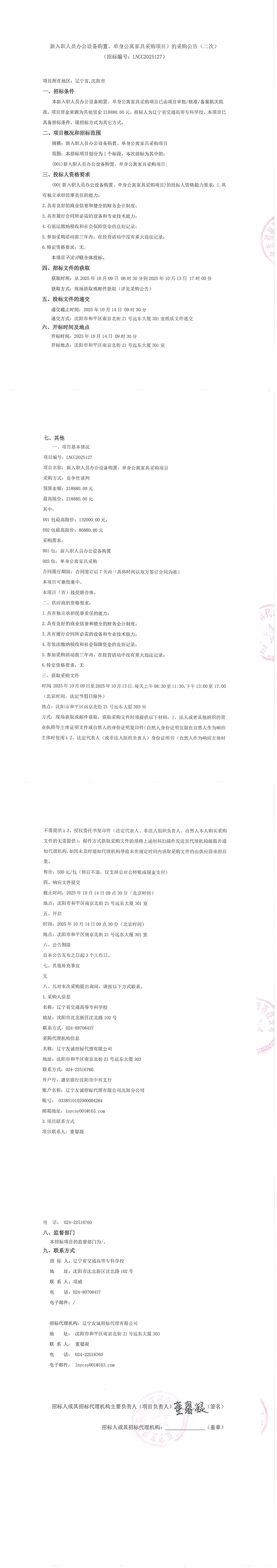 新入职人员办公设备购置、单身公寓家具采购项目采购公告(LNCC2025127)