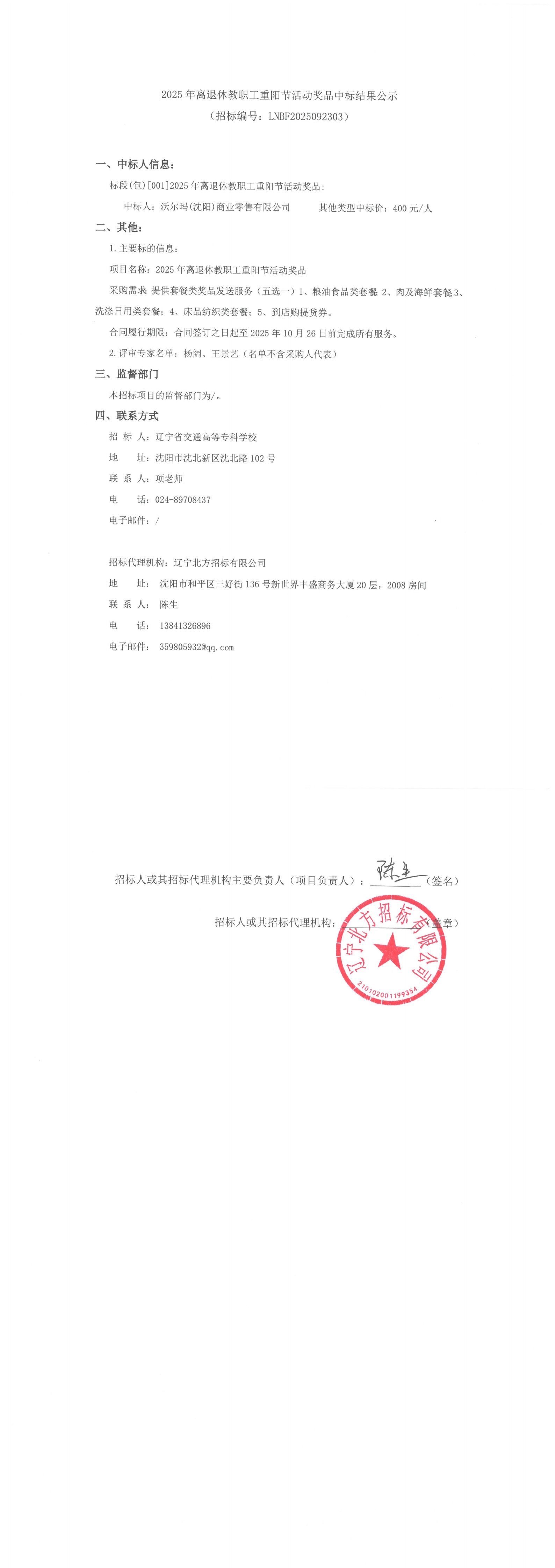 2025年离退休教职工重阳节活动奖品中标结果公示
