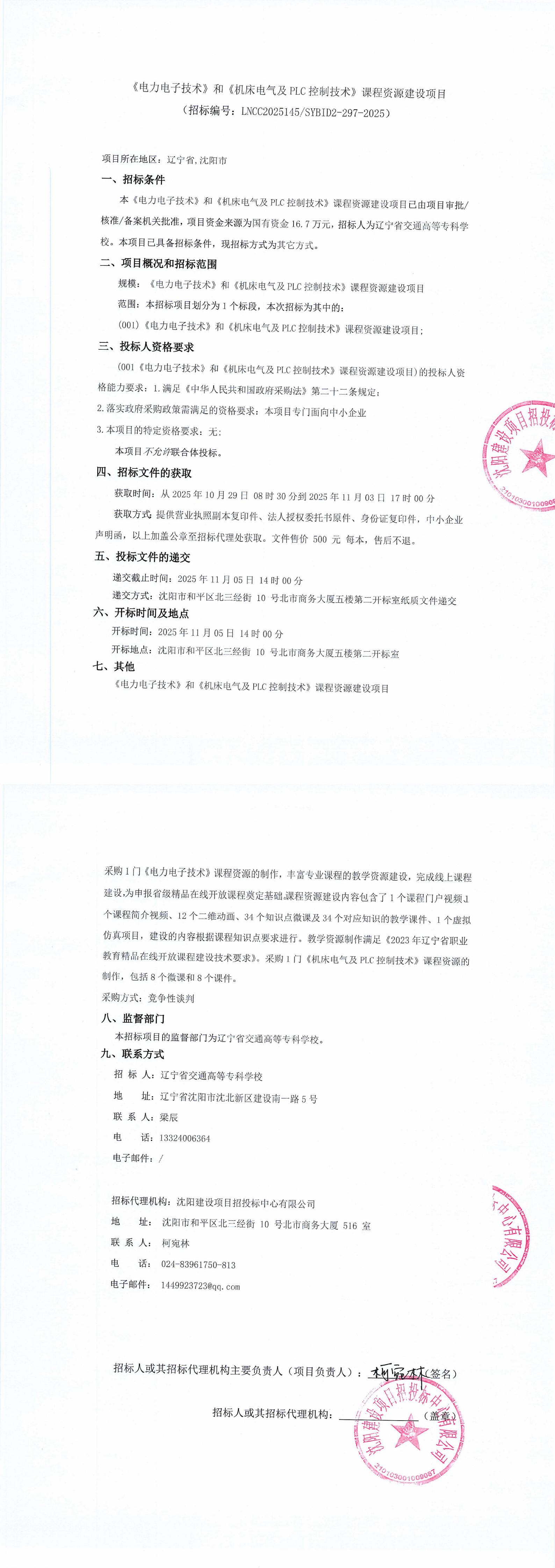 《电力电子技术》和《机床电气及PLC控制技术》课程资源建设项目招标公告(LNCC2025145)