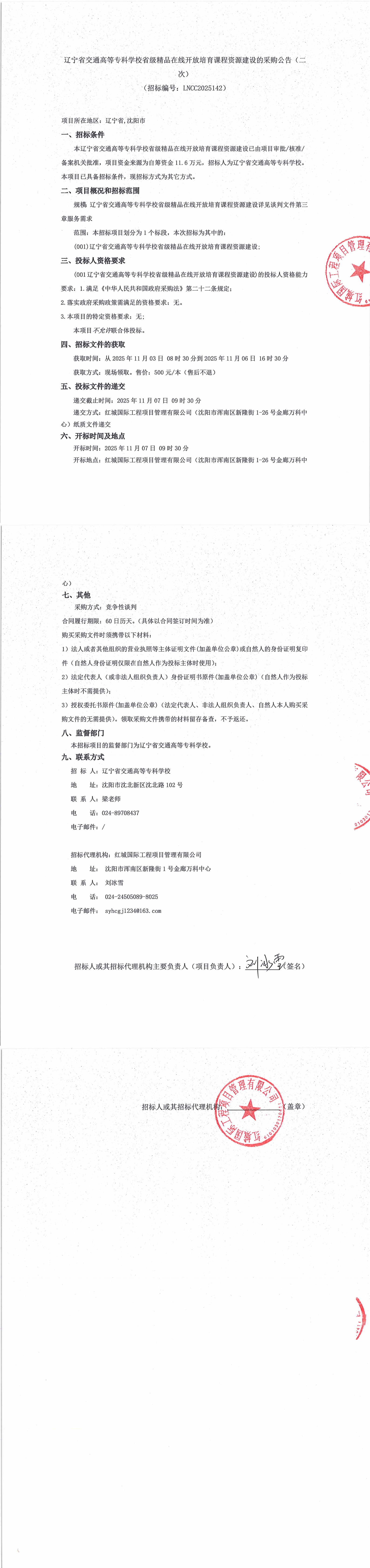 省级精品在线开放培育课程资源建设的采购公告(二次)(LNCC2025142)