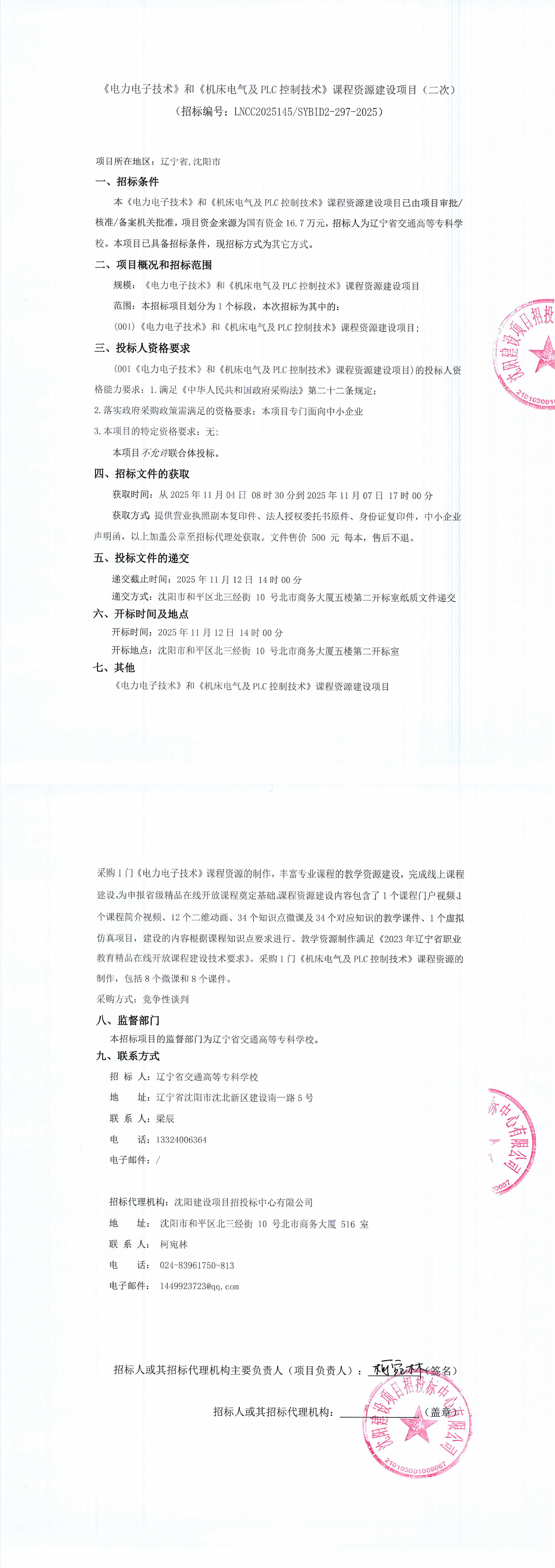 《电力电子技术》和《机床电气及PLC控制技术》课程资源建设项目二次公告(LNCC2025145)