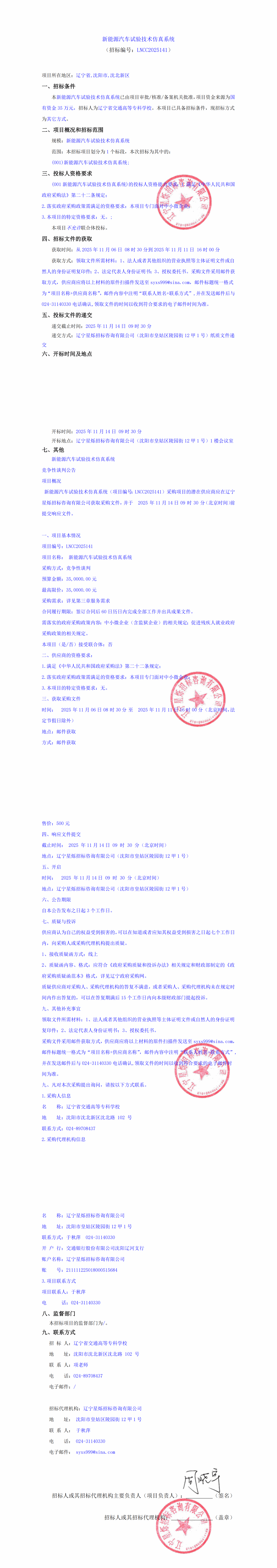 新能源汽车试验技术仿真系统项目二次公告(LNCC2025141)