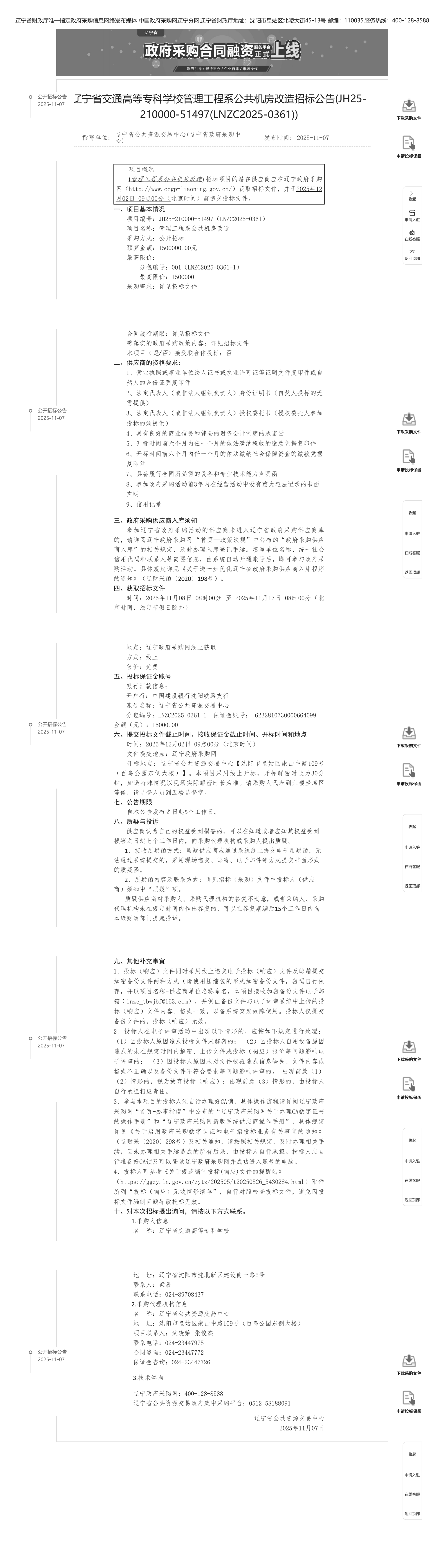管理工程系公共机房改造项目招标公告(LNCC2025144)