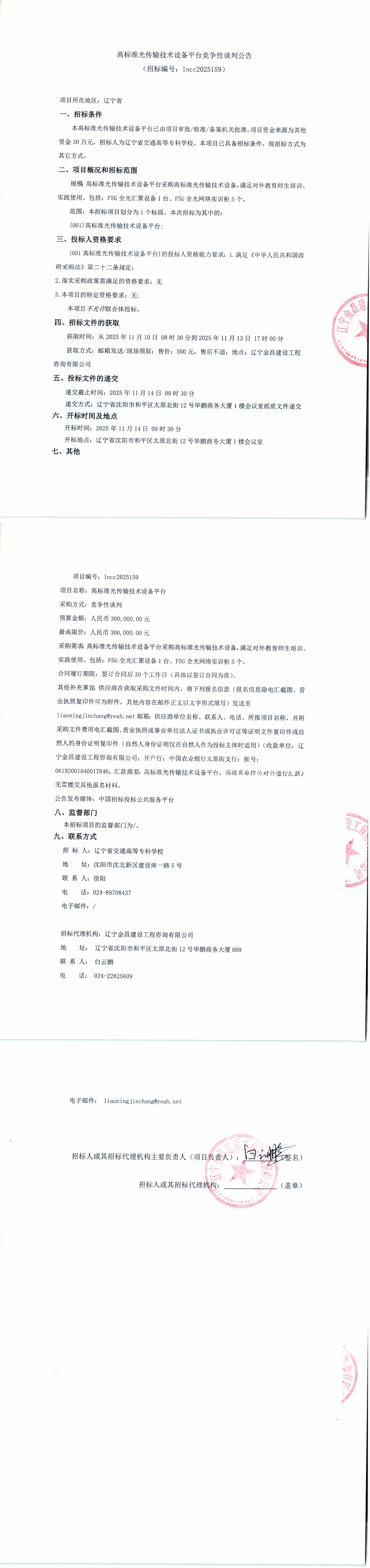 高标准光传输技术设备平台项目招标公告(LNCC2025159)