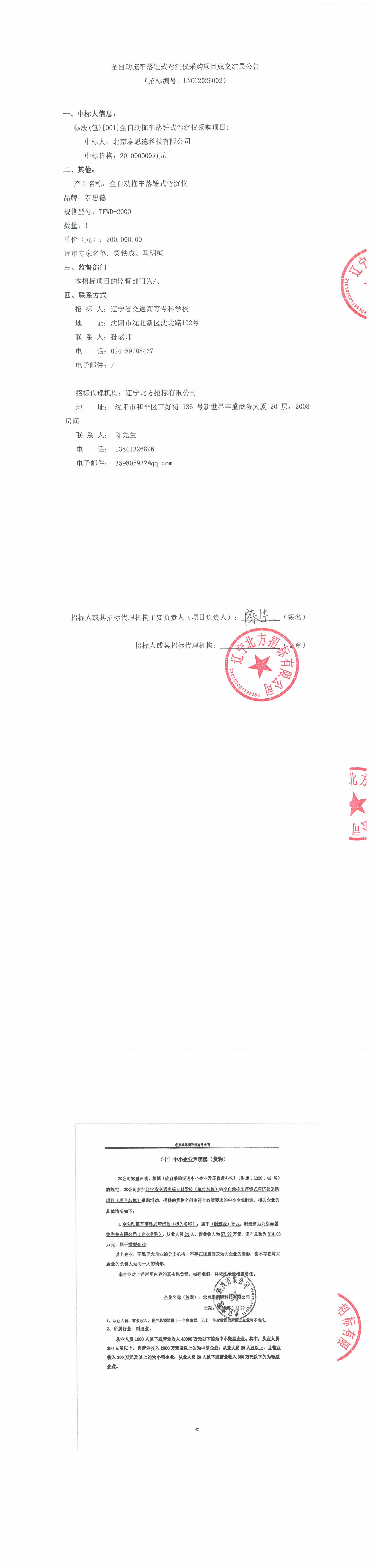 全自动拖车落锤式弯沉仪采购项目成交结果公告