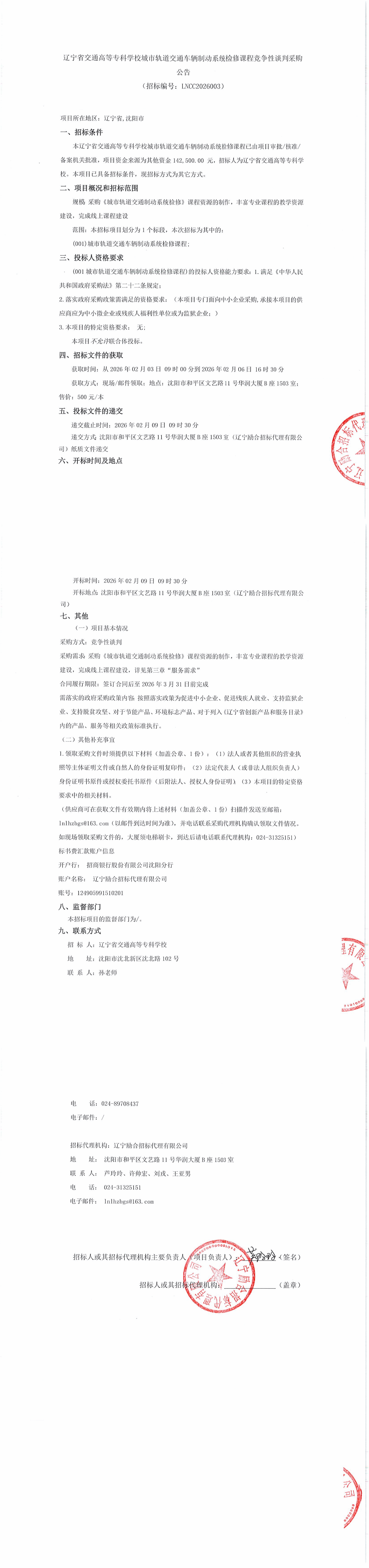 城市轨道交通车辆制动系统检修课程采购公告(LNCC2026003)