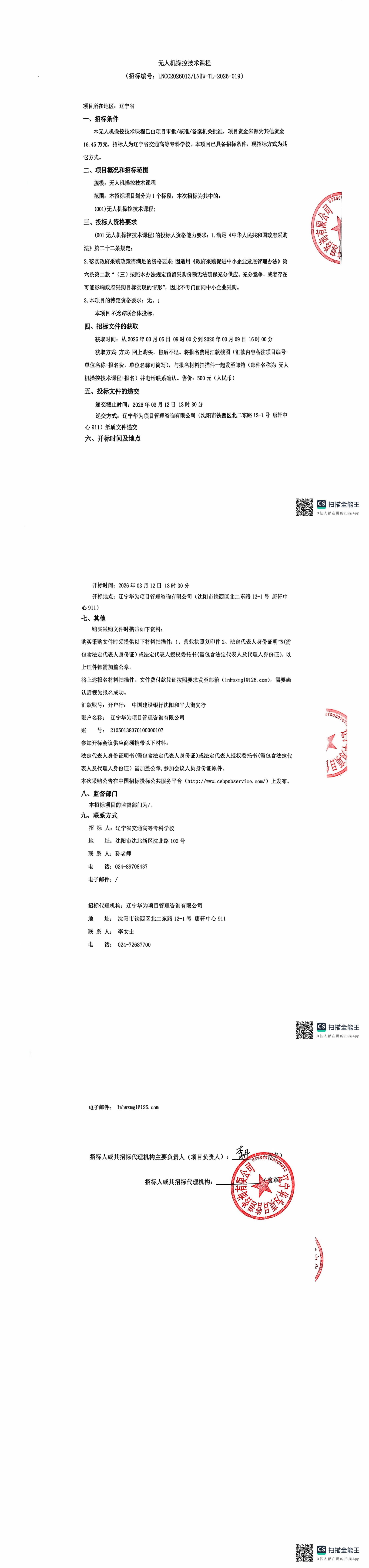 无人机操控技术课程项目招标公告(LNCC2026013)