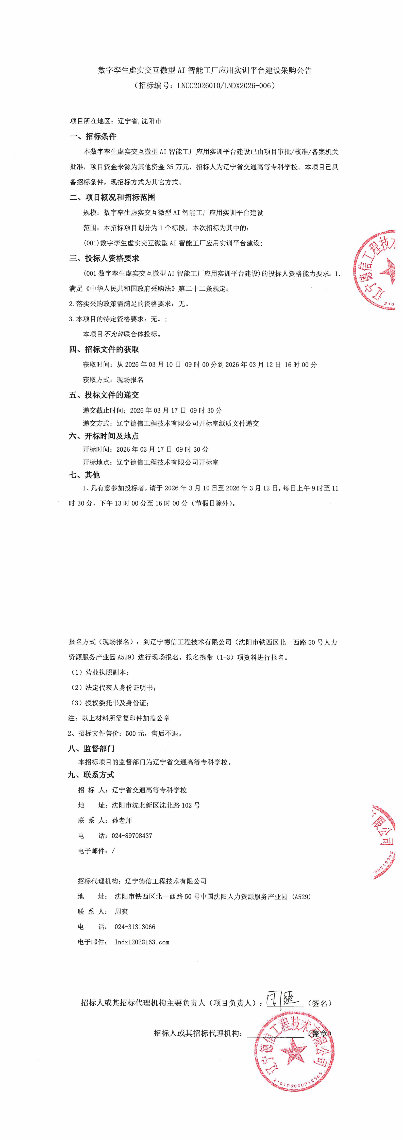 数字孪生虚实交互微型AI智能工厂应用实训平台建设采购公告(LNCC2026010)