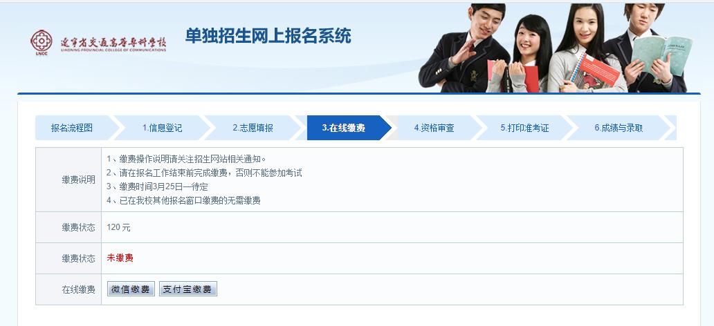 第七步:以上步骤完成后,进入报名缴费界面,选择相应的付费方式进行缴费(注:报名成功以缴费完成为准)