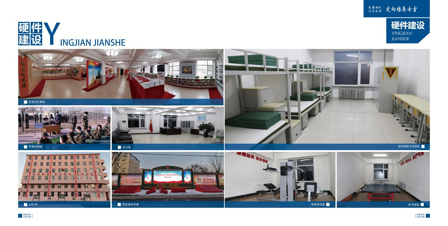 为深入贯彻习主席“把军民融合发展上升为国家战略”的重要指示精神,积极适应军民融合培养人才特点规律,培养高素质专业士官人才;根据军委国防动员部、政治工作部、教育部《关于做好定向培养士官试点工作的通知》《武警辽宁省总队与辽宁省交通高等专科学校联合开展定向培养直招士官试点合作协议》,从2014年6月开始,我校作为全国首批试点院校之一,被确定为“定向培养士官试点学校”,在全国率先面向武警部队开展定向培养工作。2014年开设数字媒体技术专业,2015年增设汽车检测与维修技术专业、影视动画专业,2019年增设道路与桥梁工程技术、智能工程机械运用技术专业。目前,学校每年面向9个省招收400余名士官生,在校士官生人数达1200余人;自2014年以来已有千余毕业生分配到全国34个总队工作。